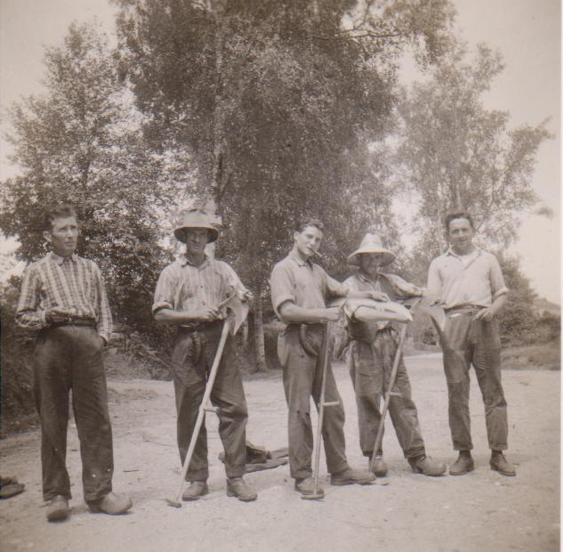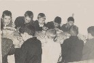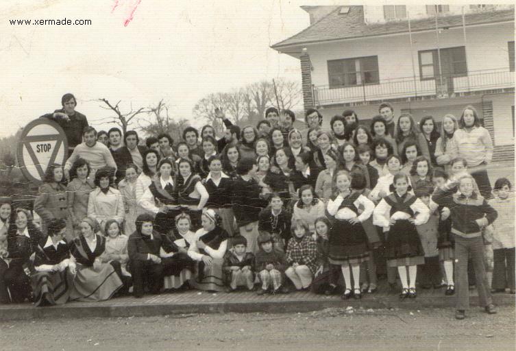 No comedor da escola año 1.963 comentarios: De Frente: Justo de Castiñeiras - Pepe de Castiñeiras - José das Carballeiras - Vicente das Carballeiras - Justino do Loimil: De espaldas: Raul da Silva - Javier de Polo - Norberto das Carballeiras - Aurelio do Xeixido